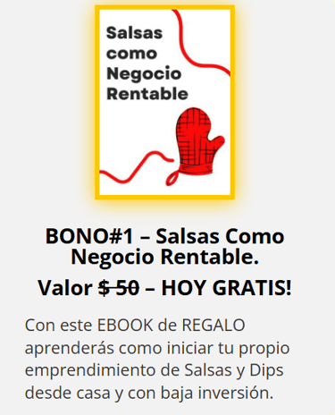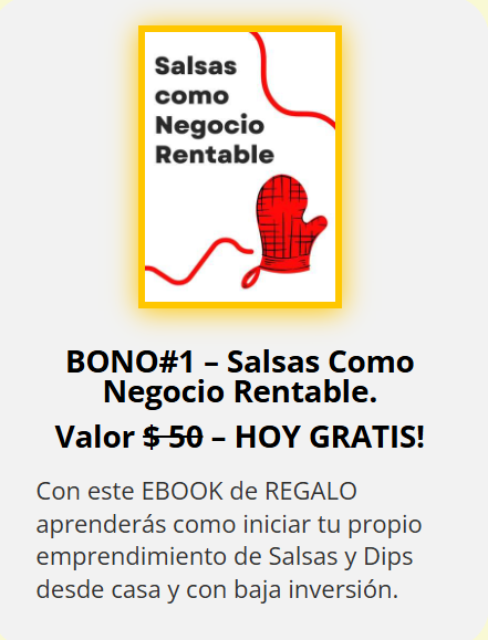 Accede hoy a la Salsas y Dips Gourmet que te ayudará a darle a tu cocina un giro de 180 grados y aprenderás el paso a paso para elaborar + de 200 recetas de alta calidad e iniciar tu propio negocio rentable y con alta demanda.
